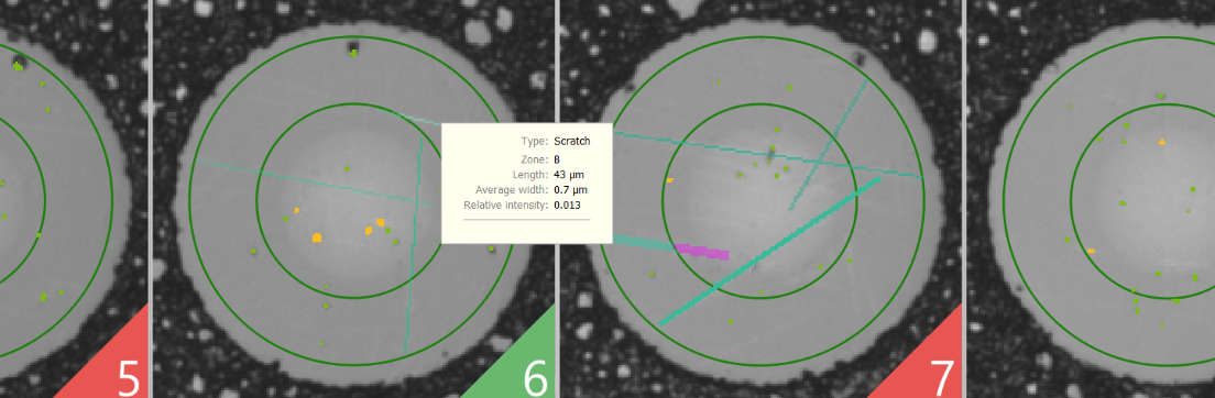 wykrywania zarysowań, defektów i zanieczyszczeń, zapewniając wysoką precyzję dzięki efektywnej rozdzielczości 1,6 µm oraz możliwości detekcji defektów o wielkości do 0,5 µm.