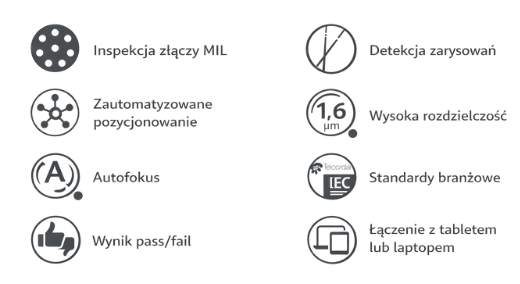 Dzięki automatycznemu systemowi pozycjonowania XYZ mikroskop przemieszcza się pomiędzy ferrulami w zaprogramowanej sekwencji, realizując w pełni automatyczny proces inspekcji bez kontaktu z badanym złączem.